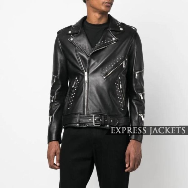 Price range: £121.00 through £178.00Men’s Black Lambskin Studded Leather Jacket