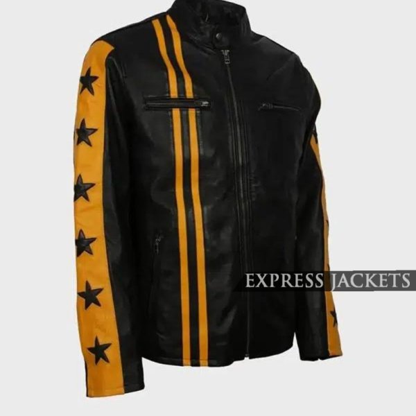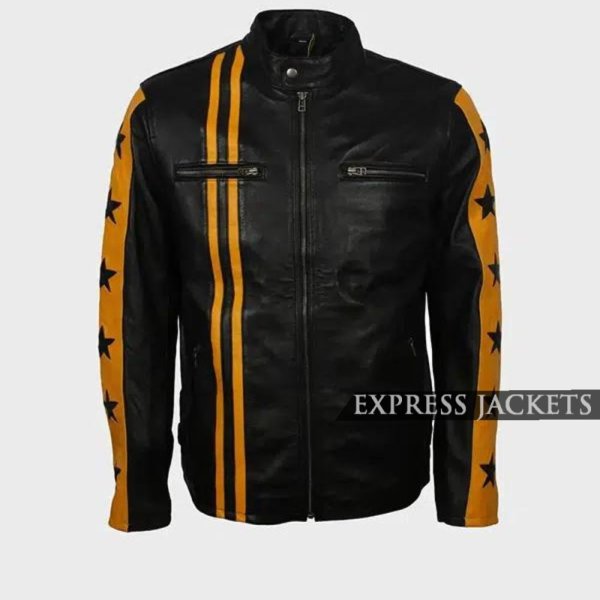 Price range: £139.99 through £169.99Men’s Cafe Racer Yellow Star Black Leather Jacket