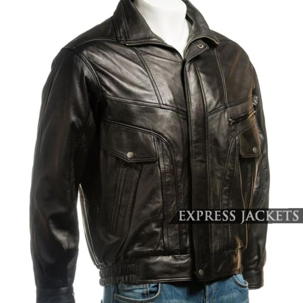 Price range: £110.00 through £170.00Men’s Black Pocket Detail Blouson Style Leather Jacket