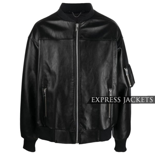 Men’s Black Leather Long Sleeves Bomber Jacket