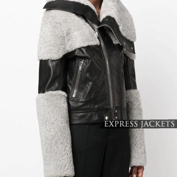 Original price was: £210.00.£139.99Current price is: £139.99.Women’s Grey Shearling Black Leather Jacket