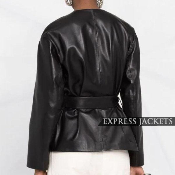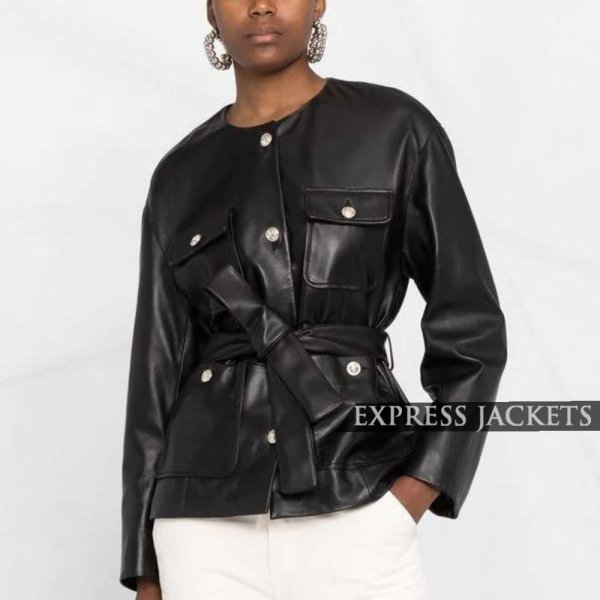 Price range: £109.00 through £172.00Women’s Black Leather Collarless Belted Jacket