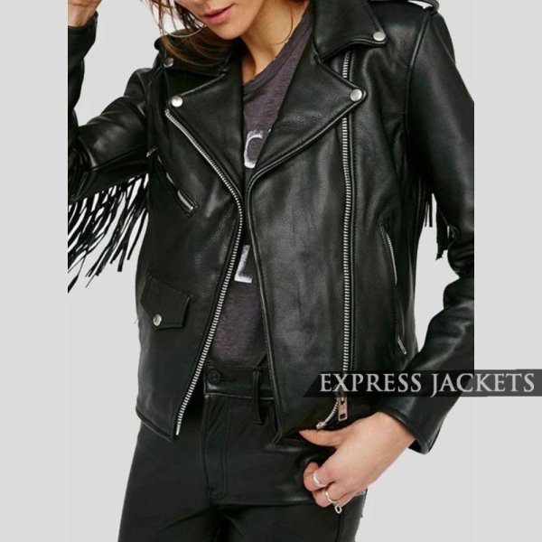 Price range: £150.00 through £175.00Women’s Black Leather Fringe Jacket