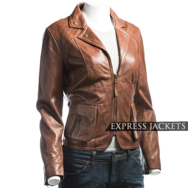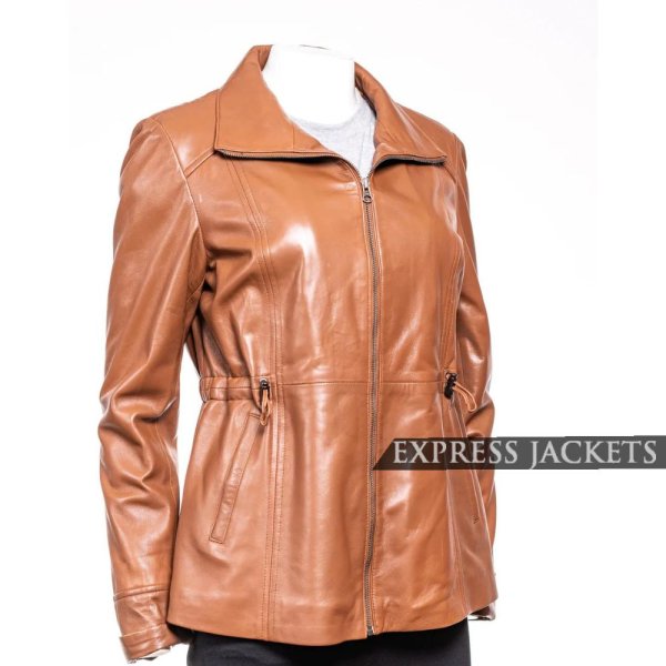 Price range: £115.00 through £172.00Women’s Tan Hip Length Toggle Waist Leather Jacket