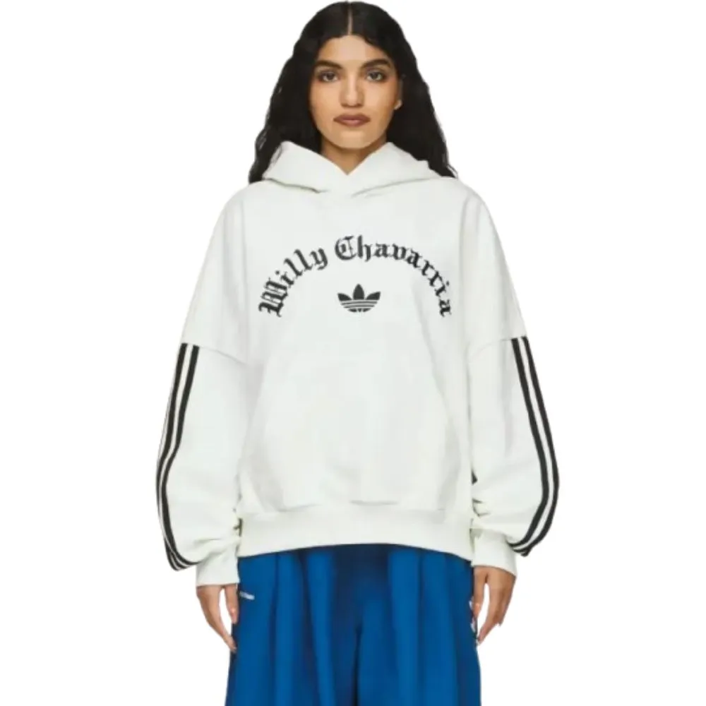 As it’s designed to do, the Adidas x Willy Chavarria Heavyweight Fleece Hoodie inspires confidence. With premium fleece fabric, the white hoodie is plush and warm and ready for street culture. The unique silhouette offers style and comfort at the same time; the rib-knitted cuffs add to the uniqueness of the style and you find that same fitted comfort in the hooded collar. The heavyweight construct adds to the superior rooftop merging street and high-end urban design. This collaboration piece addresses the needs of every leading man. Only true street culture pulled the sleeves off this hoodie; when the sun is low and the chill is on, you can wear this as a loose hoodie or layer it with style. All of the qualities of modern athletic, and oozing with style and luxury.