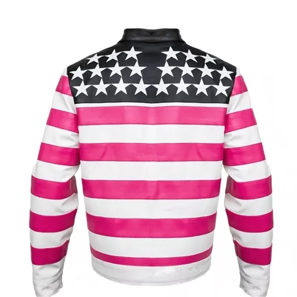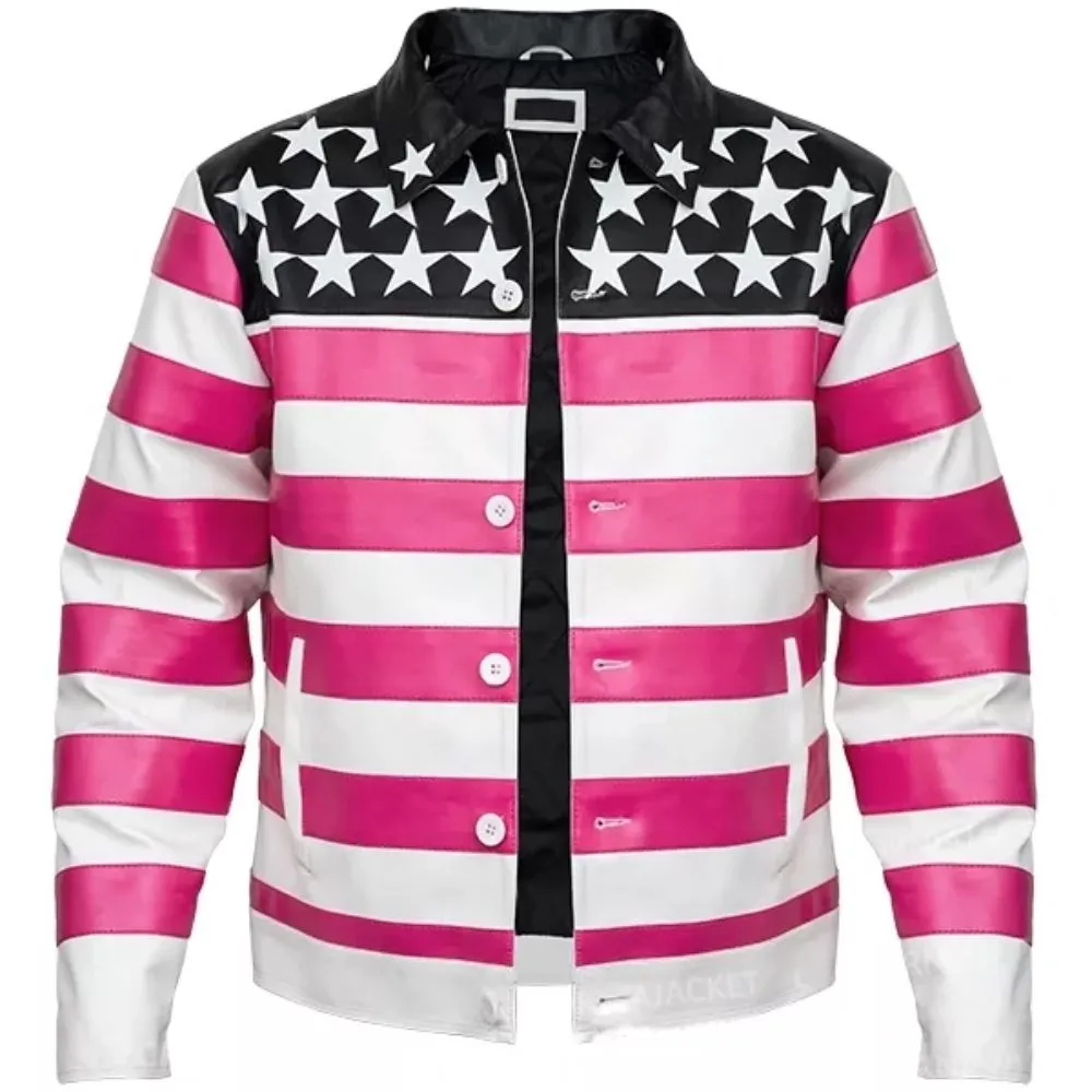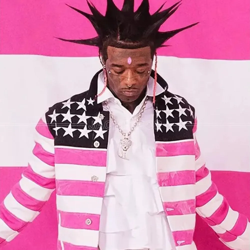 Set a fearless tone for your style with the Lil Uzi Vert Pink & White American Flag Jacket, a cool piece influenced by the bold look of the rapper. Made from either premium faux leather or genuine leather, all-day comfort is derived from the soft viscose lining. The pink and white color combination makes it eye-catching – not to mention the stand-up collar and full-length sleeves. Secure button closure with room for easy movement and functional inner and outer pockets add style points to the jacket. You can’t go wrong with this jacket for concerts, streetwear looks or anyone who loves a clean vibe.