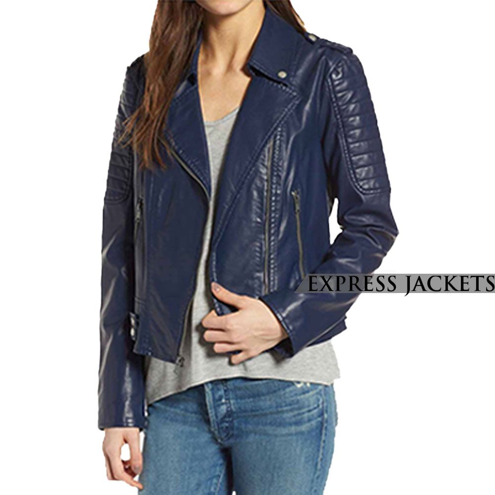 There is no better way to cover up in the cold weather than a leather jacket. It is, in all ways, a convenient and valuable wardrobe item that always makes you feel secure and stylish. The outer layer is flexible in use and creates many statement looks. But there should be a significant point for everyone that the quality of the materials has to be supple and durable. At Express Jackets, various designs and materials work according to seasonal requirements, and this upper is ideal for every lady. It is an Asymmetrical closure women’s jacket, prepared with the highest quality of leather and viscose lining; both kinds of stuff are good enough to provide warmth and coziness. The design features of this top layer are incredible and help to increase the personality. It has a beautiful quilted pattern on the sleeves, a stylish collar, and places for secure personal stuff. Ladies who prefer boldness in their costumes can grab this outerwear because it is pretty stylish because of shoulder epaulets.