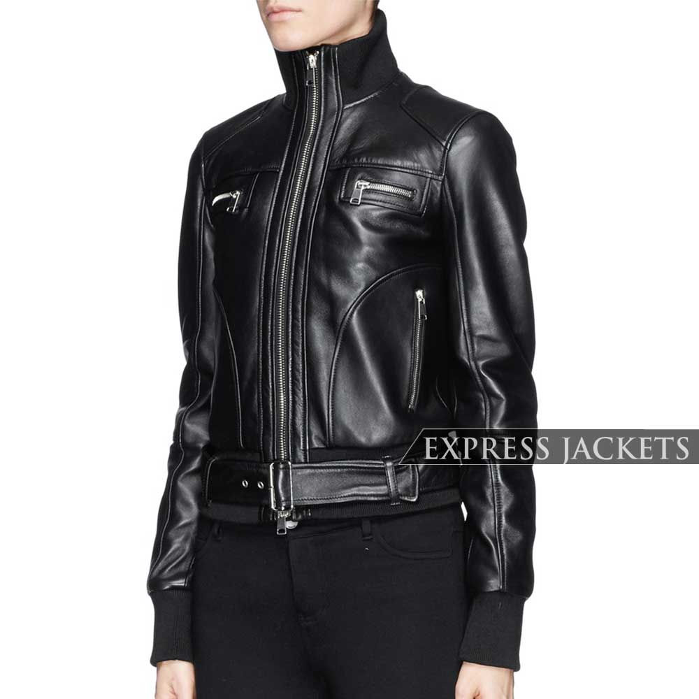 Leather Jackets will be found wherever you go, throughout the year whether it be at street-style pricing or designer level shopping. Classic leather jackets give off such different vibes to whether its detailing, metallic zip, or ribbed… No difference here. This Belted Black Leather Jacket is custom made for ladies. Whether you’re looking for something chic, or something to wear casually for everyday wear; this item is what you are looking for in this fashion era. Available in beautiful black; with ribbed standing collars as your neck will be entirely covered and enough waist belt for a sturdy look to stay active; finished with long sleeve and ended with a wide ribbed cuff. It is an overall good presentation for every woman! So, choose this style to look your most stylish!