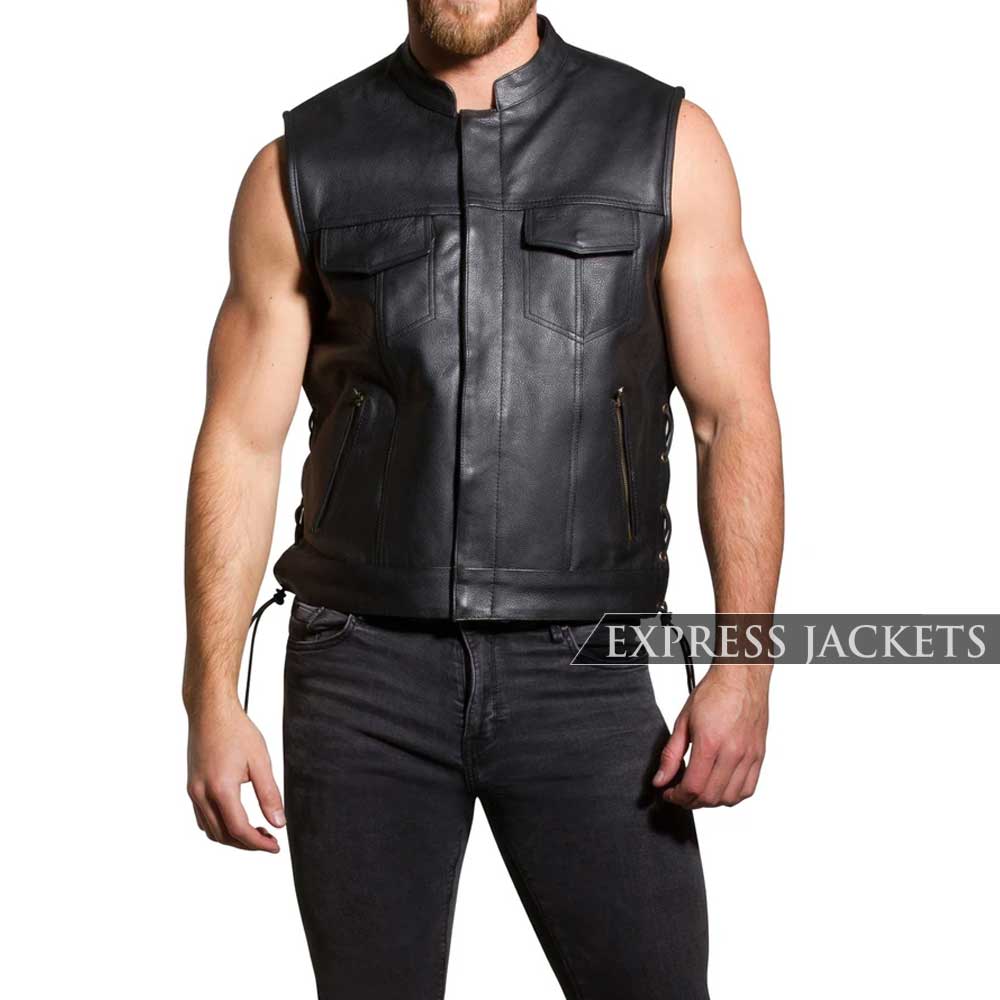 MEN BIKER BLACK LEATHER VEST