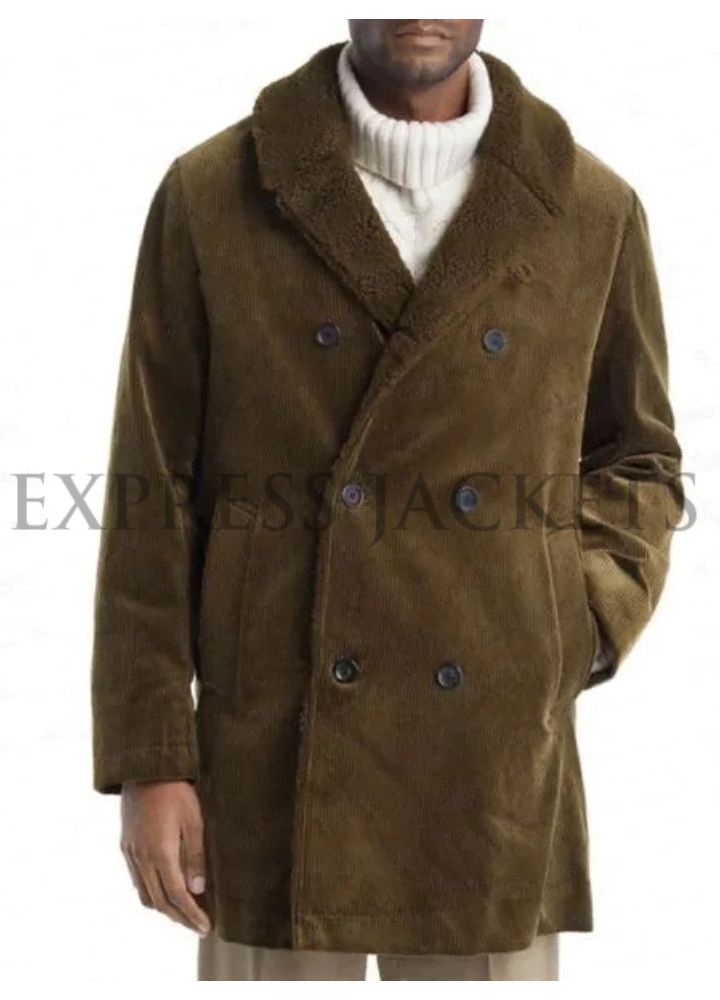 Dembe Zuma Green Blacklist Coat is an initiation wear for the fans to wear it in this season to head on in the adventures. The outer faux shearling lining ensures warmth and comfort and the double-breasted button closure gives it a timeless appeal. The soft faux shearling collar gives it a very polished coat for chilly weather. It has two outside pockets and two inside pockets for plenty of storage space. The long, fitted sleeves provide a close, snug pull while its dark green shade adds a bold syllable to any outfit.