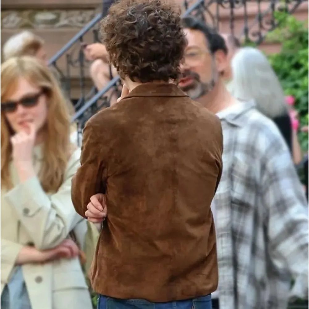 Damon’s A Bob Dylan Suede Jacket had undergone metamorphosis from humble beginnings into something Herculean about Americana. Luxurious but economic, truly wore distressed soft suede leather lined with viscose, is all about care-freedom and a legendary social dominance. This jacket features its iconic shirt styled collar, buttoned cuffs, and long sleeves-all fitting for informal or vintage looks. Two front waist pockets and two inner pockets finish off the design very well. A classic, rich brown, a retro look; it should add a great touch to any wardrobe.