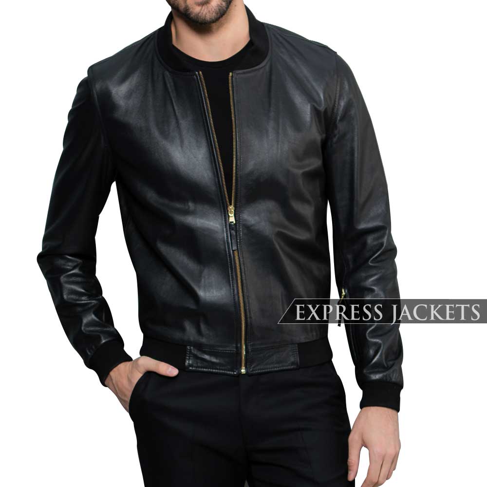MEN BLACK BOMBER LEATHER JACKET