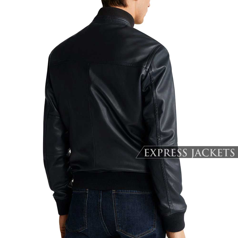 MEN BLUE BOMBER LEATHER JACKET
