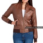 There are various styles of classic Bomber Jackets worn by singers, moves famous characters, celebrities, and even players. This bomber jacket is ideal for women, you can carry it as a designer outfit or casual wear. However, we have all updated designs in all standard sizes but you can forward custom measurements also. We are very flexible in our services. We provide the best leather material with durable viscose attachment inside. The top body layer has a buckle belt collar, front zip fastening, full sleeves with ribbed cuff, and ribbed waistline. It has three pockets on the front section, one on the chest, and two at the waist. The whole backside has stitched in detail that is for sure a unique and descriptive feature of this outerwear.