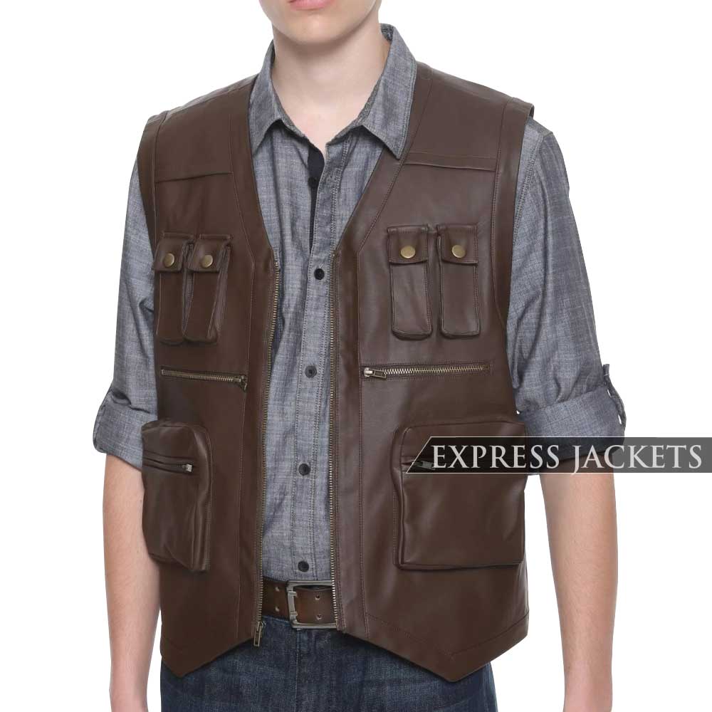 MEN MULTI POCKET BROWN LEATHER VEST