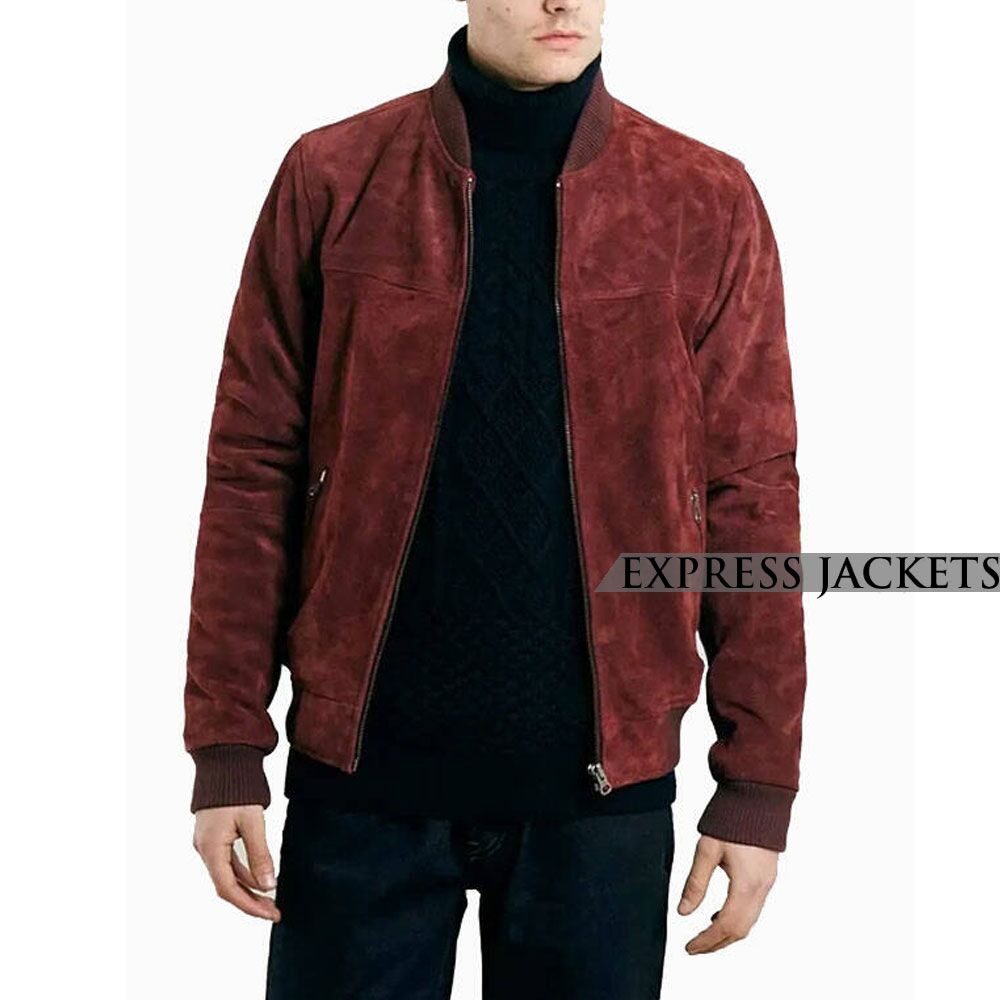 Men’s Burgundy Suede Bomber Jacket