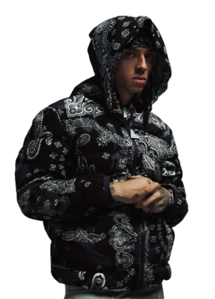 Step into the world of urban cool with the Black Bomber Central Cee Jacket which is inspired by the rapper’s easy going street style. Made from high quality parachute fabric this jacket is at once durable and very light in weight, also the soft viscose lining brings a touch of luxury to the inside. Front zip closure and hooded style collar which add to its contemporary, functional design which also works well for daily wear. This piece features long sleeves, button up cuffs, and is detailed with many pockets (two at waist, two on the inside) that play with functionality and look. In black which is a classic and very versatile base for any wardrobe, the jacket is as comfortable as it is confidant and is the realisation of Central Cee’s vision of ease and power.