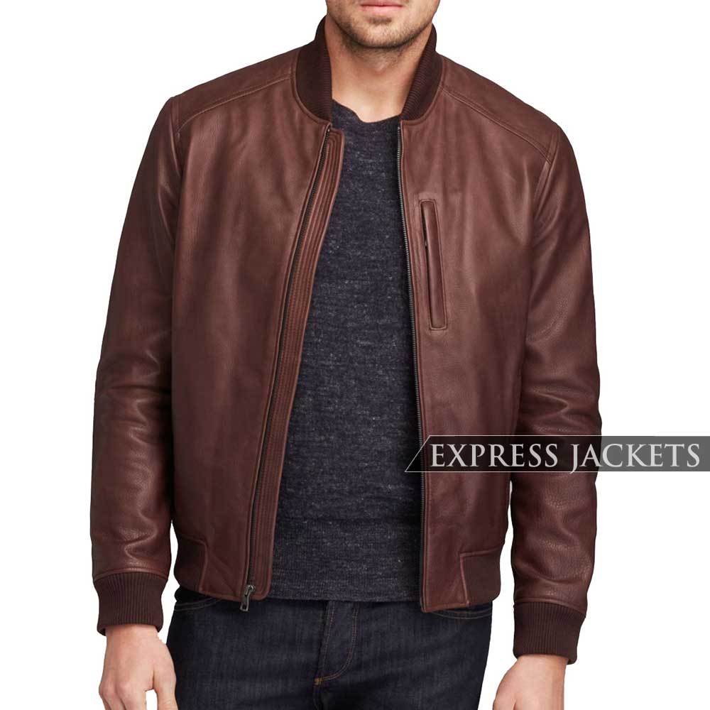 MEN BROWN BOMBER COWHIDE LEATHER JACKET