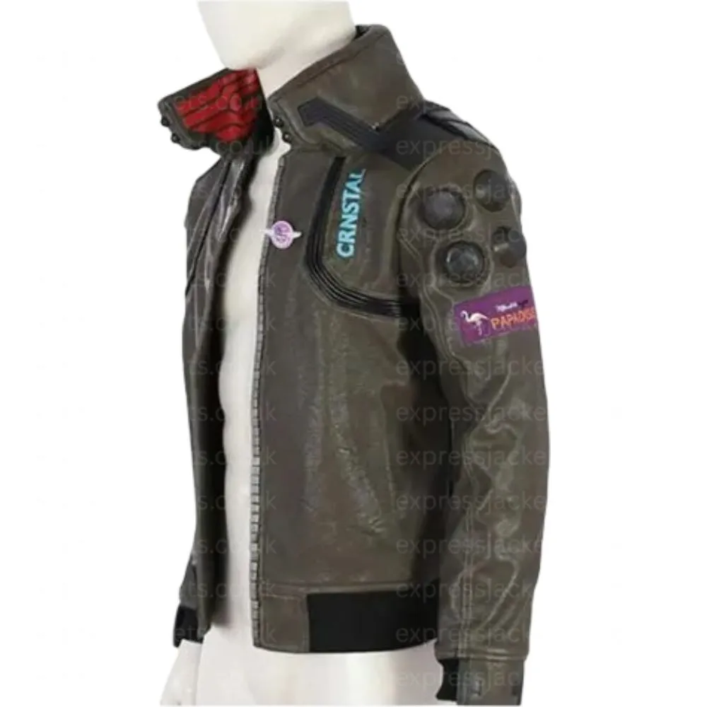 Crafted from premium faux and real leather this jacket provides durability, a sleek look, and long wear. The viscose inner lining which in turn gives a soft and very comfortable feel. It has a stand up collar which gives it a modern edgy look. The jacket has full length sleeves which also quill and hem zipped cuffs which give it a very future oriented look. The rib knit cuffs for a tight fit. For convenience we have included two external pockets and two internal in this design which in turn provides great storage. Also the brown color we chose brings a different angle to the classic cyberpunk look.