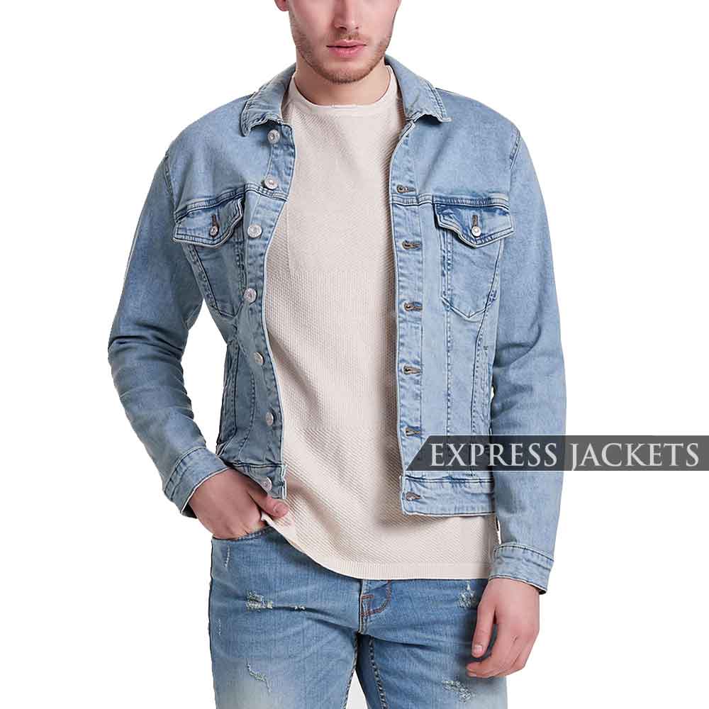 The denim jacket is workwear, which is stylish and doable, so having this top layer in your wardrobe is a sensible decision that gives an accurate result in all ways. People think it is an ideal summer collection, but we disagree with it, there are lots of designs that can be carried in even Spring and Autumn also. The design we are introducing here is a piece for all seasons; for winter, you can have more layers inside, and in Spring or Summer, a tee would be an excellent underneath piece. This top-wear comes in light blue color, and it is a traditional shade of this staple. The beautiful fashion piece offers a shirt neckline, front buttons in metal, full sleeves, and functional pockets. Be a handsome man. You need to pick a dark shade tee, with the same color jeans.