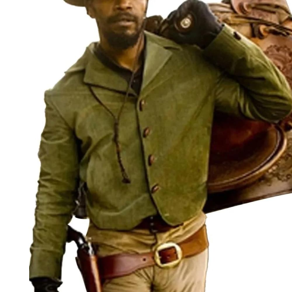 Step into the boots (and iconic green jacket) of Django Freeman, the legendary bounty hunter from Quentin Tarantino’s masterpiece, Django Unchained. Express Jackets brings you a meticulously crafted jacket inspired by Django’s signature attire, allowing you to channel his unwavering determination and fight for freedom in style.