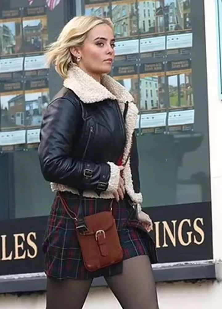 Millie Gibson Ruby Sunday Doctor Who Jacket. The jacket, made of real or faux leather, has a clean and edgy aesthetic, and faux shearling on the collar adds warmth and texture. With a zip-up front, long sleeves, and both outside and inside pockets, the jacket is as practical as it is comfortable. This classic black, easy to blend in and perfectly toning it down in any wardrobe.