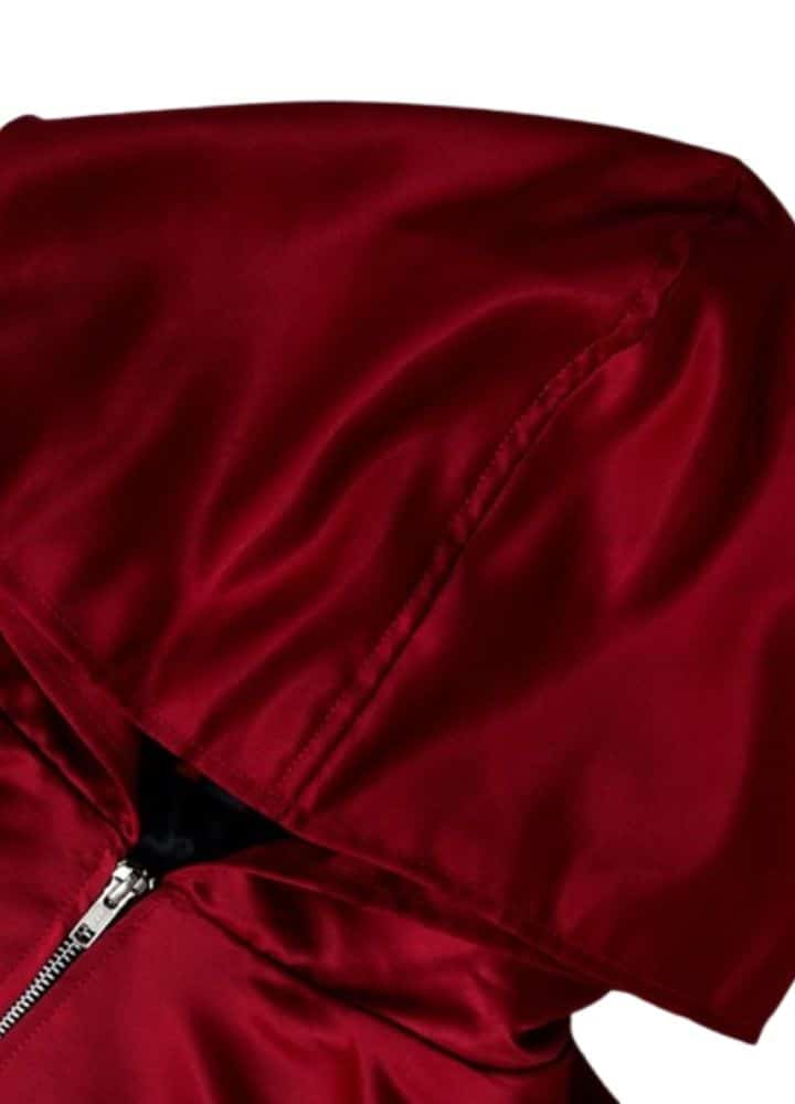 Red Eminem Houdini Red Satin Jacket is a Bangle style sexy jacket, having a stylish, bold look. Made of high quality satin fabric, which makes this jacket casual, smooth, lightweight and attention-seeking. It has a soft viscose lining for the complete wearability, and also ensures comfort with the zipper front closure. Featuring a hooded collar, it also brings a relaxed but edgy feel, perfect for styling streetwear or concert-inspired looks. Its full-length sleeves do get elasticized cuffs for the same reasons which are more flexibility and fitted fit. This jacket features two front pockets plus two inside pockets. This best-seller is sure to stand out, thanks to its bright red hue and sleek black embroidery — making it a no-brainer for Eminem fans and trendy tasters alike.