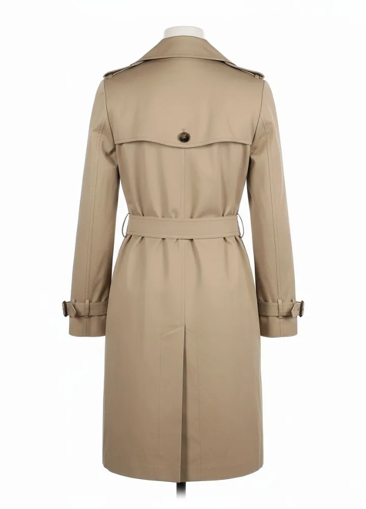 in Each and Every Detail. From the inspiration of Emma Thompson’s remarkable portrayal of Fiona Maye in The Children Act this beige Cotton Coat which exudes grace and class. Made of fine cotton with a silk like viscose line it brings together comfort and durability. The double breasted button up front and turned down collar add to that classic English touch which plays into professional as well as casual wear. With long sleeves that have tied up cuffs and ample waist and inner pockets this coat is at once elegant and functional. In a minimal design and neutral tone it is a classic that will be a staple in any woman’s wardrobe which values in between luxury and tailored refinement.