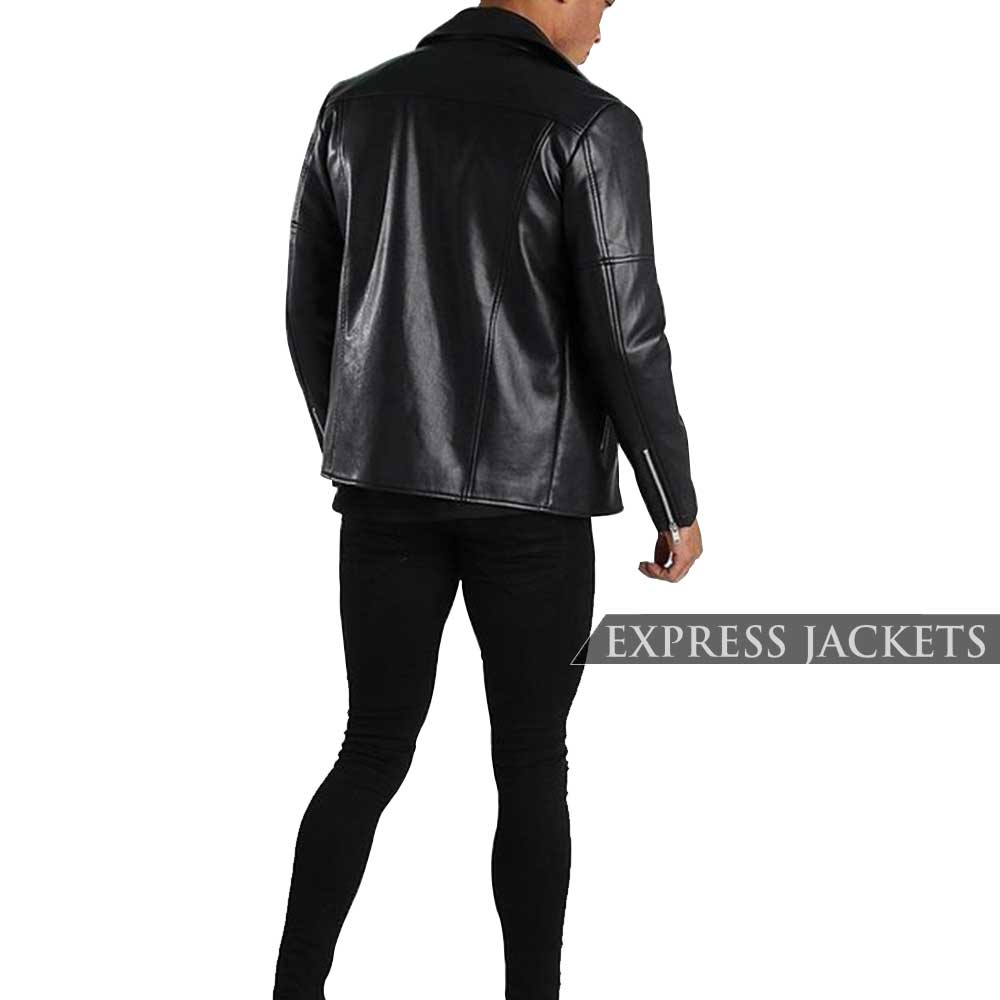 MEN BLACK BIKER FAUX LEATHER JACKET