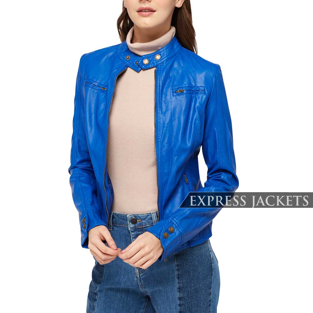 WOMEN BLUE FAUX LEATHER JACKET
