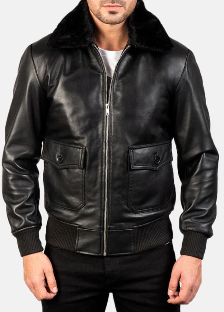 Made from top-quality real or synthetic leather, the Black Leather Bomber Flight G-1 Jacket is a classic piece that combines style and longevity. The soft quilted polyester lining makes it warm and comfortable, and the front zipper closure allows it to fit securely. Shirt-style collar with detachable fur accents [Makes it a weather-proof piece] Rib-knit cuffs give the jacket a slim fit, and it has two inner pockets and two outer pockets. That made this the perfect addition to any outfit on the road, as it came in sleek black; ideal for travelling incredibly and stylishly.