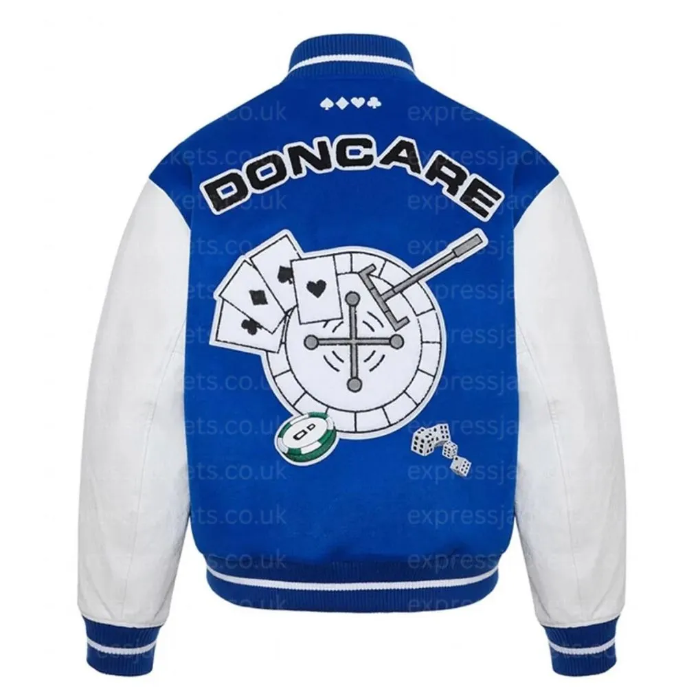 Elevate your streetwear style with The Gambler Doncare Varsity Jacket which is inspired by classic varsity fashion and modern urban trends. Made from premium wool with a look of real style leather on the sleeves and a soft viscose lining, this jacket is at once warm, durable and very fashionable. We have it in blue and white as well as green and white, it is the perfect mix of athletic appeal and every day wear.
