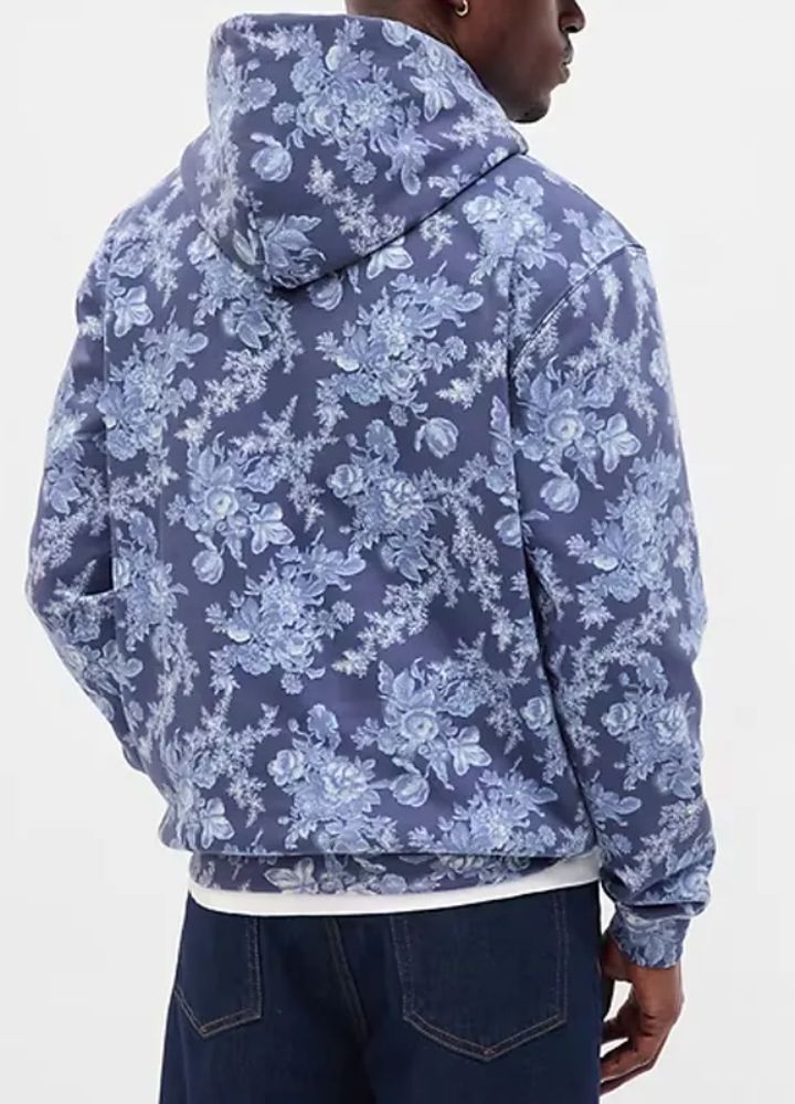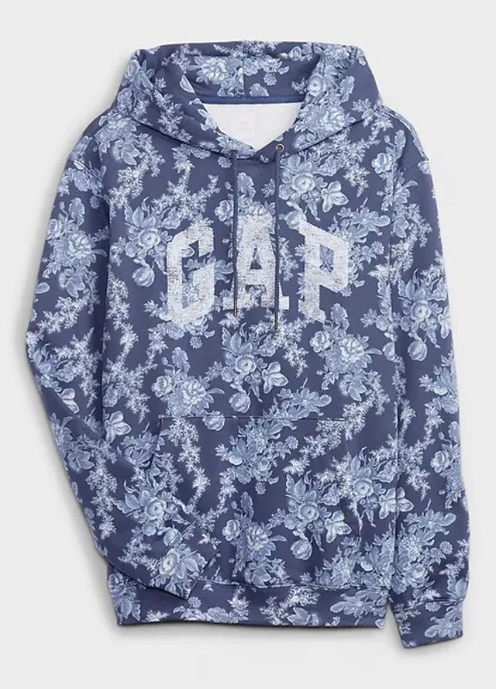 Gap × LoveShackFancy Floral Printed Hoodie fresh and stylish. This hoodie is made of soft fleece fabric. It has a pullover-style closure for easy wear and a hooded collar for extra coziness. Featuring long sleeves with such rib-knitted cuffs, it offers a well fitted while allowing for all day comfort. Kangaroo pocket gives it a bit more carefree and casual, plus it is useful. The hoodie has a cute floral print in pink and blue colors.