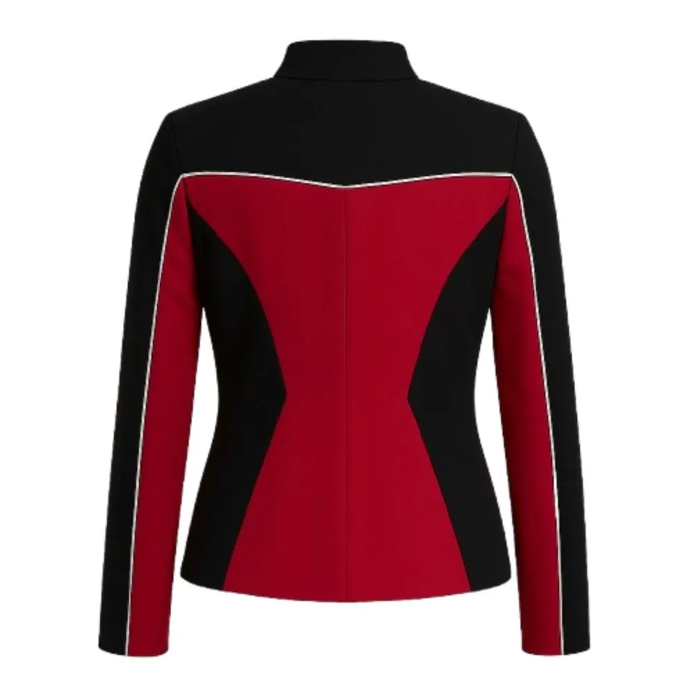 Step into the world of Star Trek with the Gina Yashere Starfleet Academy Bomber Jacket which is a must have for any true fan of the classic series. Made from high quality fleece with a soft viscose lining this jacket is at once comfortable and very put together in look. The stand up collar and full length sleeves add to the style and function of the piece while the red and black color way brings out the classic Starfleet design. With a front zip closure which also makes it easy to throw on over a t shirt or a full themed outfit. Designed for cosplayers and everyday wearers this jacket presents a bold statement of loyalty, courage and adventure which is what the Starfleet Academy is all about. Also thanks to its tough build and bright colors this piece is great for conventions, themed events or just a casual get together where you want to put on the uniform of a Starfleet officer.