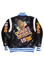 Classics Black “Don’t Be a Menace Satin Headgear Jacket This jacket is constructed from high satin fabric, which ensures a glossy, smooth touch, while remaining lightweight and sturdy at the same time. A classic touch comes from the rib-knitted collar inspired by its varsity roots, and a snap-tab buttoned closure ensures the best possible fit. The full-length sleeves with rib-knitted cuffs deliver warmth and comfort while offering a sporty look. With its classic black tone, it adds a unique style to the end-users that make it perfect for pop culture and streetwear lovers alike, especially those that grew up in the 90s.