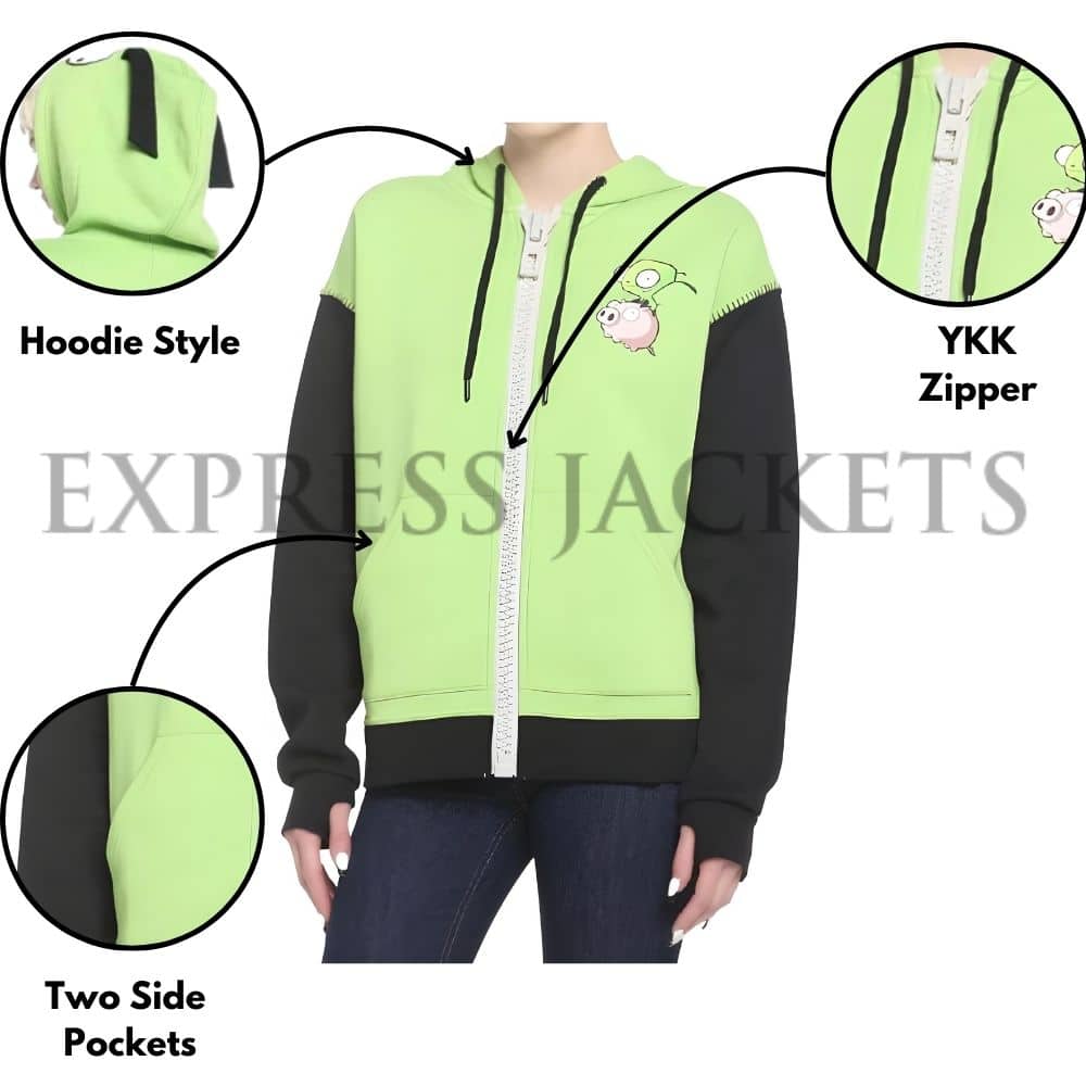 Stand out with the iconic design of this hoodie jacket, featuring the beloved Invader Zim Gir character for a touch of animated charm.