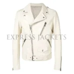 Get noticed with the effortlessly cool Jim Carrey Street Style White Leather Jacket, modeled after the actor’s urban sleek styling. Made from high-quality real or faux leather, this jacket features plastic asymmetrical zip-up closure, lapel style collar, and zippered cuffs to give you that leather biker punch. With three outer pockets and two inner pockets, this jacket gives you style while maintaining functionality. The Jim Carrey Street Style White Leather Jacket is finished in a brilliant white color and is an eye-catching staple for any wardrobe.