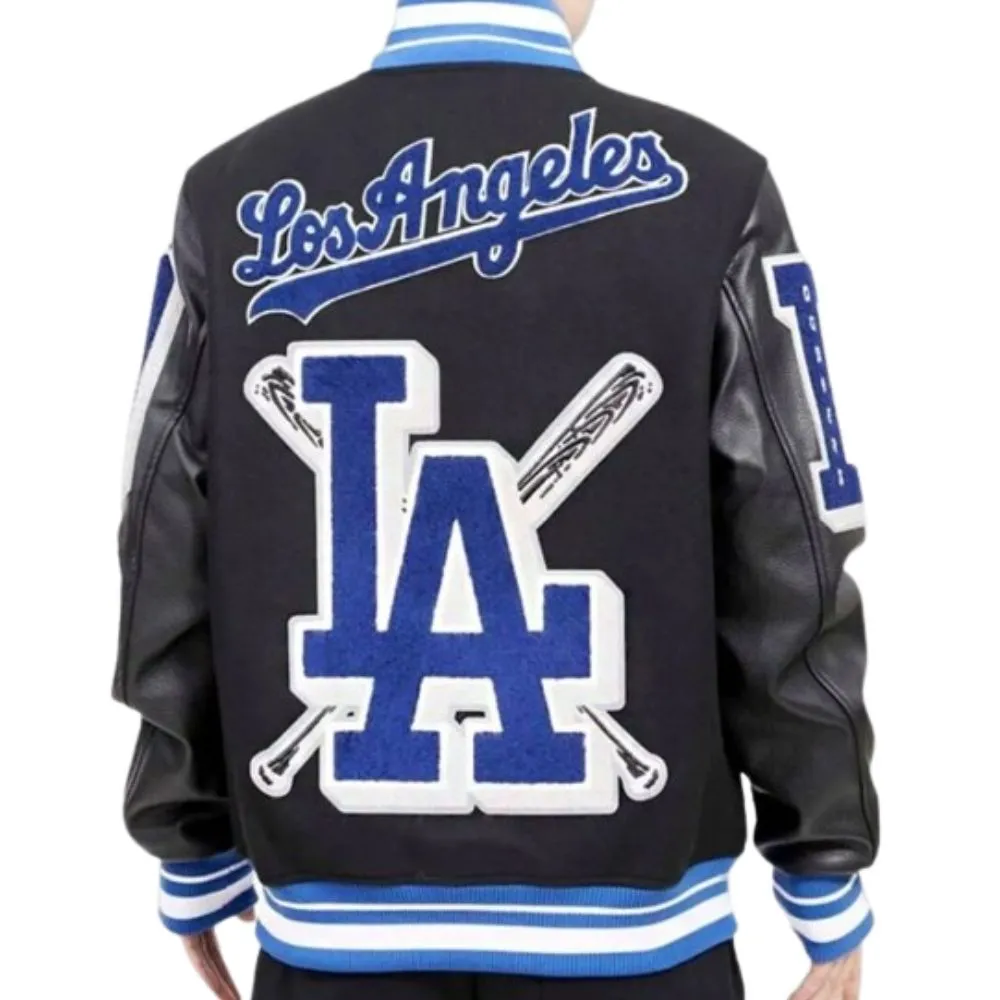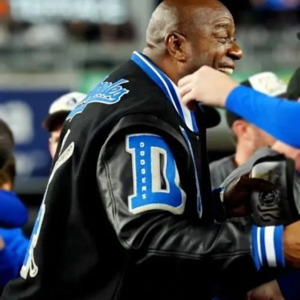 Show your support for the courts of basketball and baseball in one cool piece with the Magic Johnson Dodgers Black Varsity Jacket. We present to you this expertly designed piece which is a mix of premium wool and real leather on the sleeves the perfect balance of comfort, durability and sports fashion. The viscose lining is what makes this a all day wear piece, and the mix of zip and button closure add to the function yet fashionable look. With full length leather sleeves, rib knitted collar, cuffs and hemline this jacket delivers a close fit with a classic varsity look. Its bold black color which enhances versatiliy plays up the sporty look and goes great with jeans, joggers or casual wear. Also it has four pockets which two are inner we have style and function balanced in this piece. A true must have for collectors this jacket pays tribute to Magic Johnson’s great impact and also supports the Dodgers cause which makes it a great item for fans and fashion lovers.
