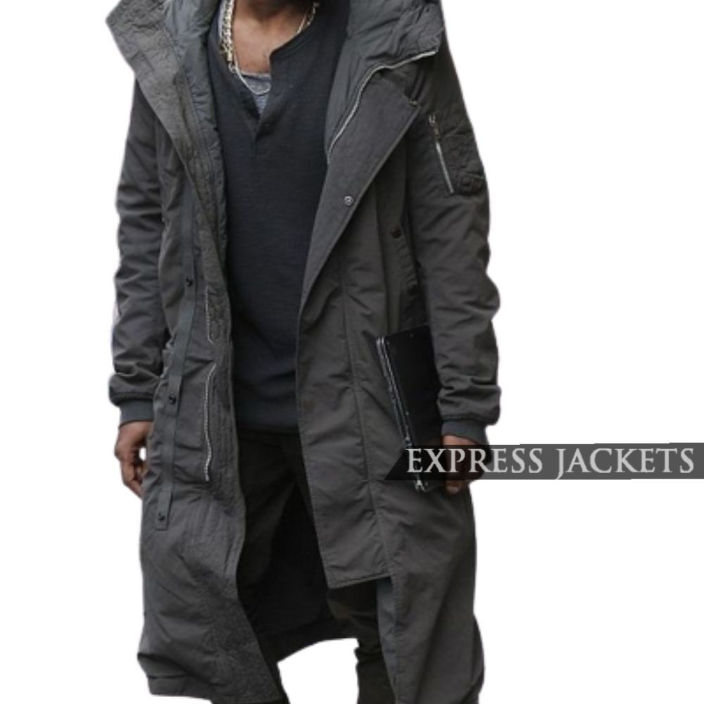 Kanye West Long Grey Cotton Hooded Coat