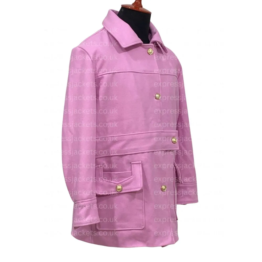 Step in to a world of grace in the Lauren Graham Gilmore Girls Season 4 Pink Wool Coat which was designed to pay tribute to her character of Lorelai Gilmore. Made from the finest wool and线 too which is soft viscose this coat is a blend of comfort, warmth, and durability. The shirt like collar and button down front add a very put together look while the full length sleeves and tailored fit give it a very put together feel. It’s light pink color brings a dose of femininity which makes it the perfect piece for both casual and semi formal wear. With two outer and one inner pocket it is functional without loosing that which is so important to the eye. This coat is a fine representation of Lorelai’s confidence and easy going chic style, it is a must have for both fans of the show and fashion enthusiasts.