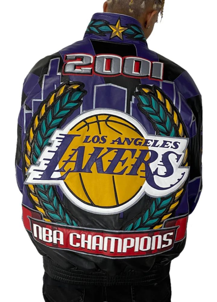 And finally, the Championship Los Angeles Lakers Jacket This jacket is all about Legacy. Crafted from real leather or its faux counterpart, it is both durable and stylish. The viscose is soft and breathable, and the stand-up style collar gives it an athletic vibe. Boasting a snap tab button closure and snap tab cuffs, this two-tone jacket makes a statement. Includes spacious side pockets for functionality