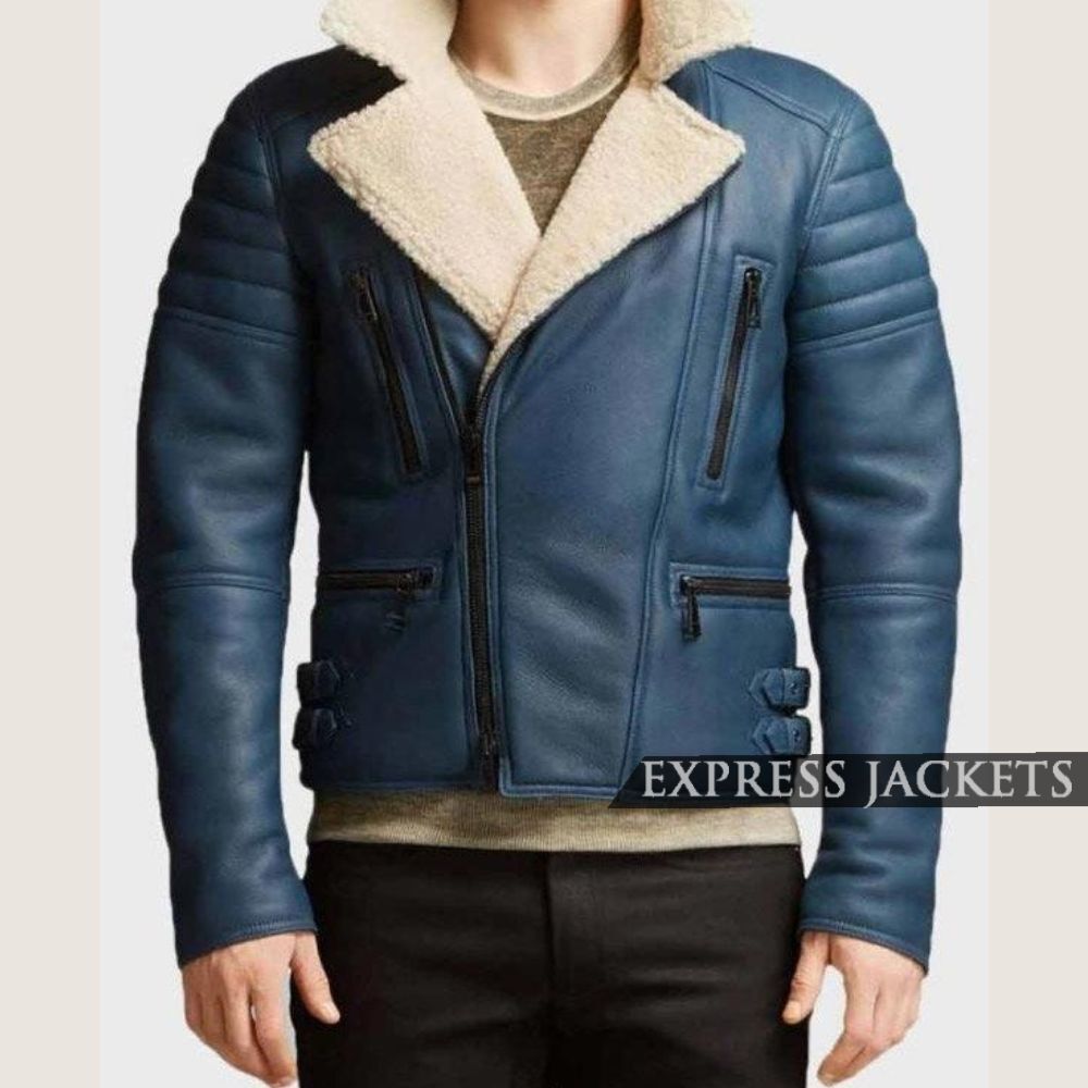 This shearling collar jacket is made up of 100% pure leather that enhances its uniqueness. Soft viscose lining attached inside to keep you warm and comfortable. Front open zipper closure along with full sleeves and multiple pockets with a zipper closure which makes it outlandish. Its blue color adds a bold touch to it. A masterpiece for you to wear wherever you like and this attire will make you stand out from others every time.