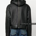 Men’s Black Leather Hooded Jacket with Brown Faux Shearling Lining – Winter Must-have