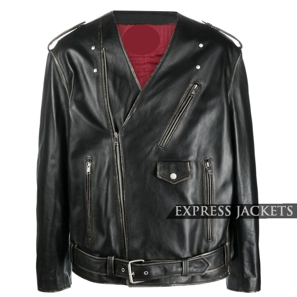 Men’s Black V-Neck Calf Leather Jacket – Superior Quality, Premium Leather, Classic Modern, Minimalist Style.