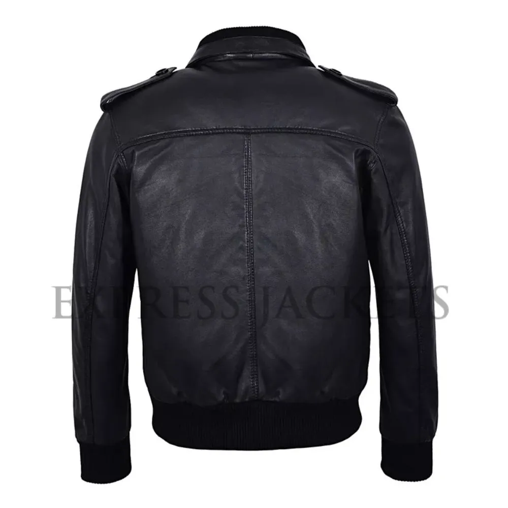 Timeless Edge: Men’s Black Cowhide Leather Bomber Jacket