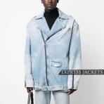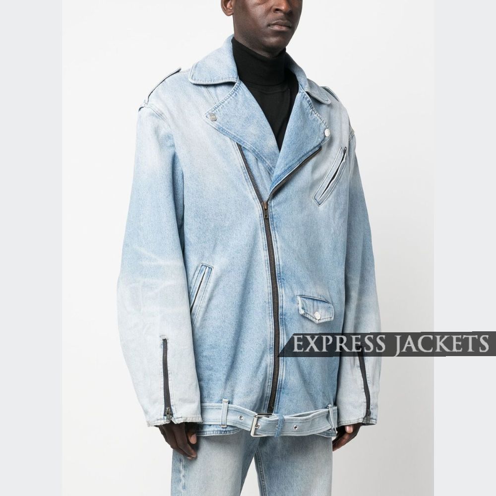 Men’s Light Blue Cotton Biker Jacket – A Contemporary Take on the Classic Biker Jacket.