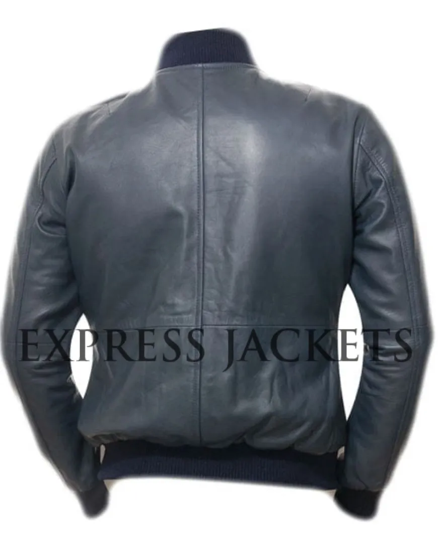 Men’s Blue Leather Bomber Jacket