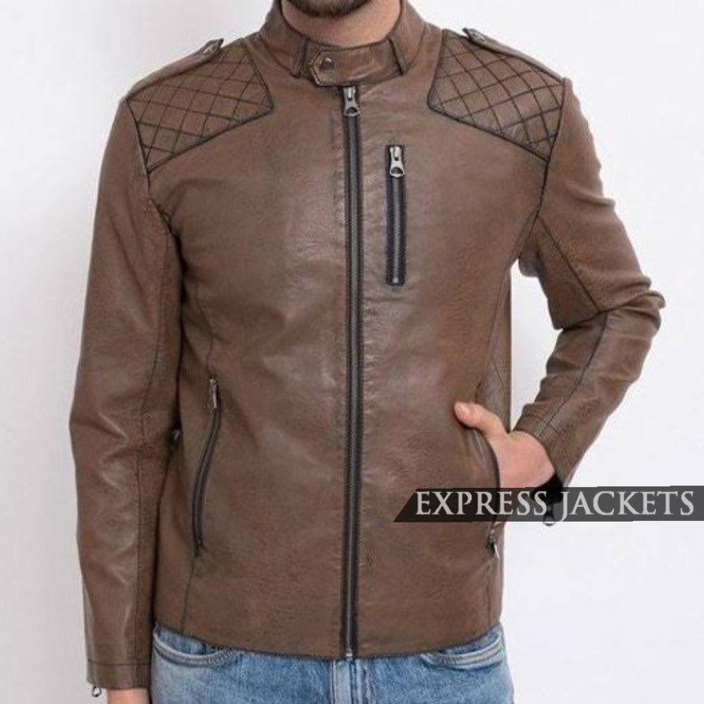 Men’s Brown Tan Leather Slim-Fit Jacket — Modern, Sleek & Elegant