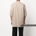 Man Beige Cotton V Neck Half Sleeve Casual Shirt