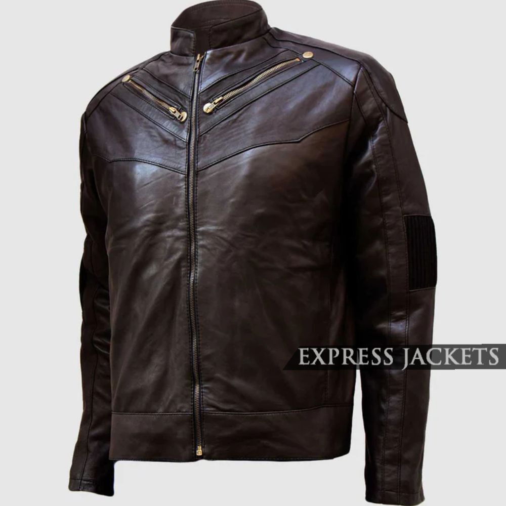 Elevate your wardrobe with this sophisticated rugged Men’s Brown Leather Cowhide Jacket made with quality and striking detailing. Made from tough cowhide leather and lined with satin, it can be worn straight out of a box for all-day comfort and lasting wear. The standing collar and YKK zipper front closure provide a modern flair while the soft gold zip detailing on the chest and sleeves provide urban flair. Finally, the padded shoulders and several zipper pockets offer ample protection while allow practical storage. Whether your riding or just out for a stroll downtown this brown leather jacket offers classic biker styling with a polished finish.